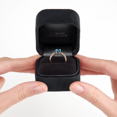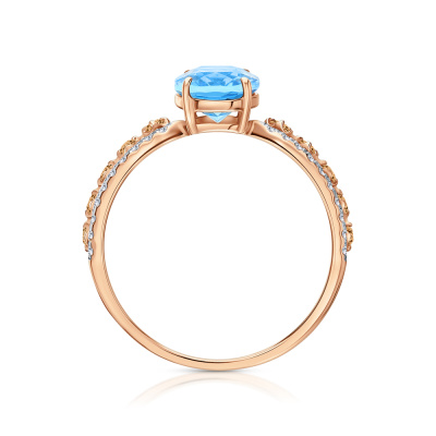 Кольцо с 20 бриллиантами природными, 0.07 карат, огранка круг 17 граней, цвет 2, чистота 2, тип огранки А; 1 топазом свисс природным, 1.44 карат; 10 топазами бесцветными природными, 0.16 карат; Розовое золото 585 пробы.