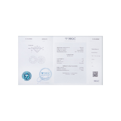 Кольцо с 1 бриллиантом природным, 1.5 карат, огранка круг 57 граней, цвет 5, чистота 5, тип огранки А; Белое золото 750 пробы.