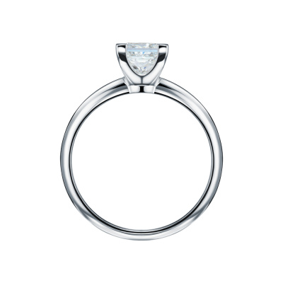 Кольцо с 1 бриллиантом природным, 1 карат, огранка принцесса 65 граней, цвет 4, чистота 5, тип огранки А; Платина 950 пробы.