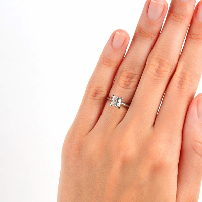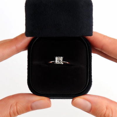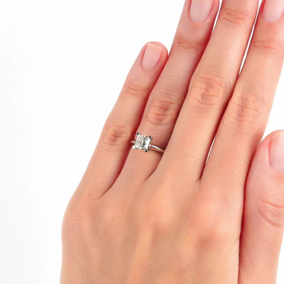 Кольцо с 1 бриллиантом природным, 1 карат, огранка принцесса 65 граней, цвет 5, чистота 5, тип огранки А; Платина 950 пробы.