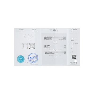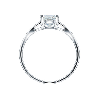 Кольцо с 1 бриллиантом природным, 1 карат, огранка принцесса 65 граней, цвет 4, чистота 3, тип огранки А; 16 бриллиантами природными, 0.22 карат, огранка круг 57 граней, цвет 3, чистота 6, тип огранки А; Белое золото 750 пробы.