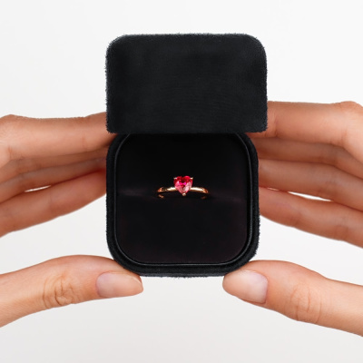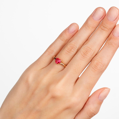 Кольцо с 1 рубином синтетическим, 0.959 карат, тип огранки Б; Розовое золото 585 пробы.