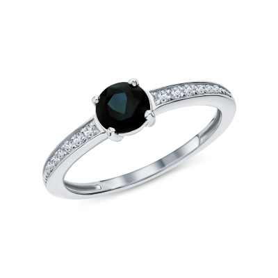 Кольцо с 6 бриллиантами природными, 0.04 карат, огранка круг 57 граней, цвет 3, чистота 6, тип огранки А; 6 бриллиантами природными, 0.02 карат, огранка круг 17 граней, цвет 2, чистота 2, тип огранки А; 1 сапфиром природным, 0.52 карат, цвет 2, чистота 2, тип огранки В; Белое золото 585 пробы.