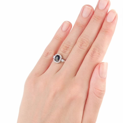 Кольцо из белого золота 585 пробы, украшенное 22 бриллиантами общим весом 0,094 карата. 17 граней придают камням блеск и сияние. Цвет и чистота бриллиантов равны 2, что делает их яркими и безупречными. Кроме того, кольцо украшено 2 бриллиантами общим весом 0,012 карата с такими же характеристиками. В центре кольца находится прекрасный сапфир весом 0,949 карата с ярким цветом и чистотой 3. Это украшение станет идеальным подарком или дополнением к вашей коллекции украшений.