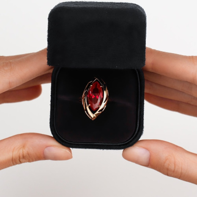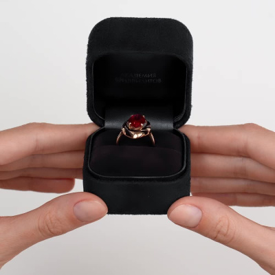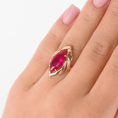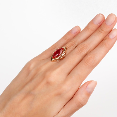 Кольцо с 1 рубином синтетическим, 4.44 карат; Розовое золото 585 пробы.