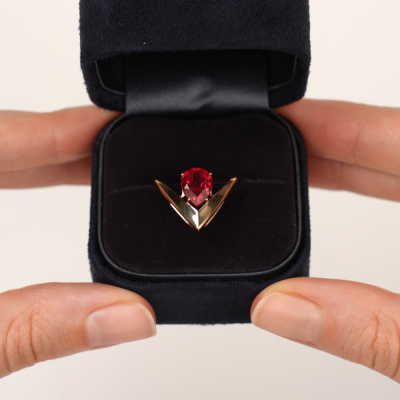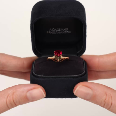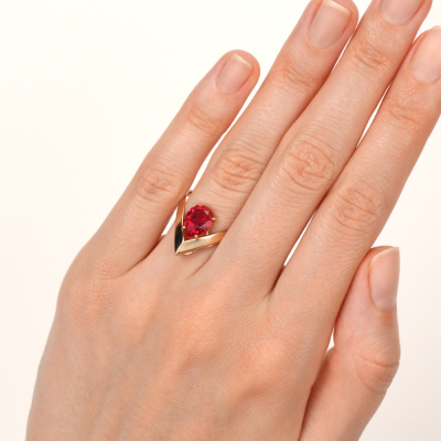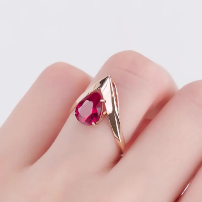 Кольцо с 1 рубином синтетическим, 2.15 карат, тип огранки Б; Розовое золото 585 пробы.