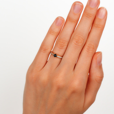 Кольцо с 12 бриллиантами природными, 0.05 карат, огранка круг 17 граней, цвет 2, чистота 2, тип огранки А; 1 сапфиром природным, 0.16 карат, цвет 2, чистота 2, тип огранки В; Розовое золото 585 пробы.