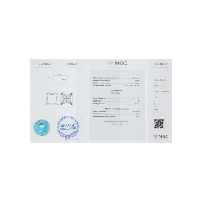 Кольцо «Бриллианты Якутии» с 1 бриллиантом, 1.02 карат, огранка принцесса 65 граней, цвет 5, чистота 3, тип огранки А; Платина 950 пробы.