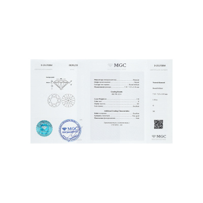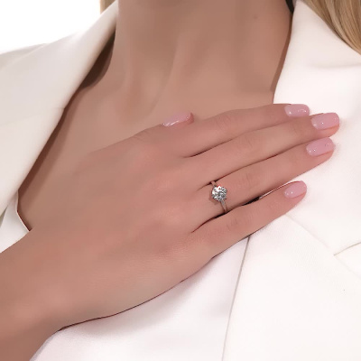 Кольцо с 1 бриллиантом природным, 1.5 карат, огранка круг 57 граней, цвет 4, чистота 6, тип огранки А; Белое золото 750 пробы.