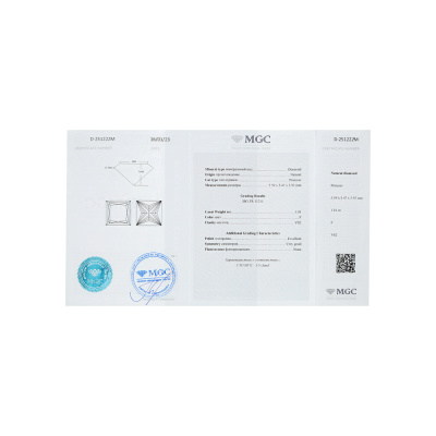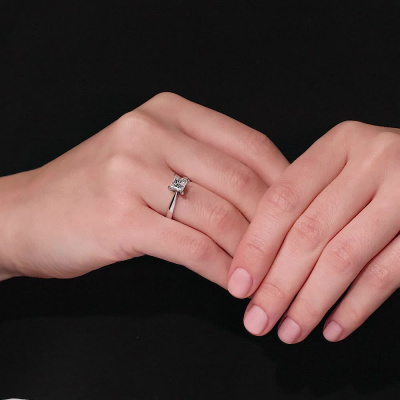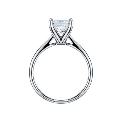 Кольцо с 1 бриллиантом природным, 1.01 карат, огранка принцесса 65 граней, цвет 3, чистота 5, тип огранки А; Белое золото 750 пробы.