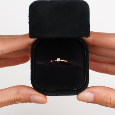 Кольцо с 1 бриллиантом природным, 0.08 карат, огранка круг 57 граней, цвет 3, чистота 6, тип огранки А; Розовое золото 585 пробы.