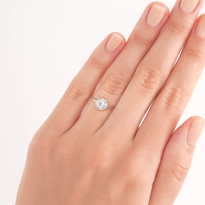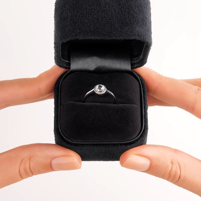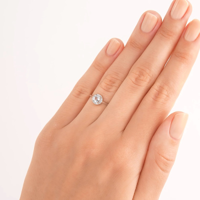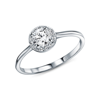 Кольцо с 12 бриллиантами природными, 0.02 карат, огранка круг 17 граней, цвет 2, чистота 2, тип огранки А; 1 топазом бесцветным природным, 0.31 карат; Белое золото 585 пробы.