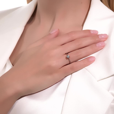 Кольцо с 1 бриллиантом природным, 0.5 карат, огранка круг 57 граней, цвет 4, чистота 7, тип огранки А; Белое золото 585 пробы.