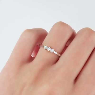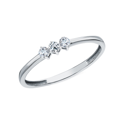 Кольцо с 3 бриллиантами, 0.15 карат, огранка круг 57 граней, цвет 4, чистота 6, тип огранки А; Белое золото 585 пробы.