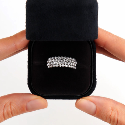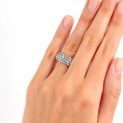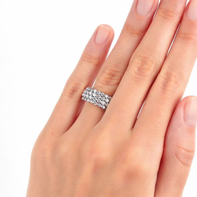 Кольцо «БРИЛЛИАНТЫ ЯКУТИИ» с 24 бриллиантами, 0.854 карат, огранка круг 57 граней, цвет 3, чистота 6, тип огранки А; 24 бриллиантами, 0.498 карат, огранка круг 57 граней, цвет 3, чистота 6, тип огранки А; Белое золото 585 пробы.