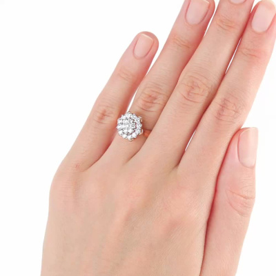 Кольцо с 19 бриллиантами, 0.722 карат, огранка круг 57 граней, цвет 3, чистота 6, тип огранки А; Розовое и белое золото 585 пробы.