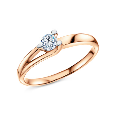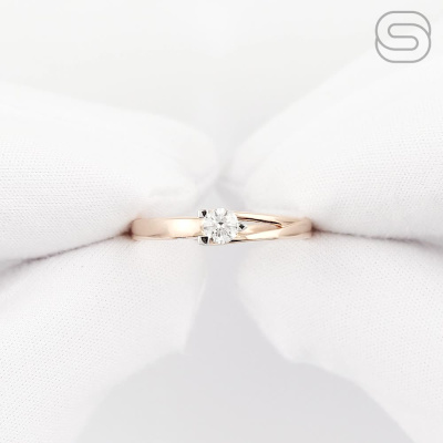 Кольцо с 1 бриллиантом природным, 0.2 карат, огранка круг 57 граней, цвет 3, чистота 6, тип огранки А; Розовое золото 585 пробы.