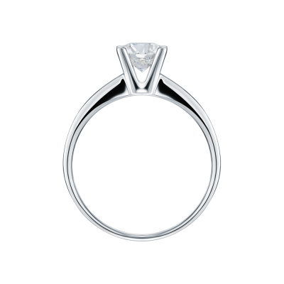 Кольцо с 1 бриллиантом природным, 0.9 карат, огранка круг 57 граней, цвет 6, чистота 5, тип огранки А; 18 бриллиантами природными, 0.17 карат, огранка круг 57 граней, цвет 3, чистота 6, тип огранки А; Белое золото 750 пробы.