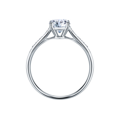 Кольцо с 1 бриллиантом природным, 1.01 карат, огранка круг 57 граней, цвет 3, чистота 2, тип огранки А; 16 бриллиантами природными, 0.18 карат, огранка круг 57 граней, цвет 3, чистота 6, тип огранки А; Белое золото 750 пробы.