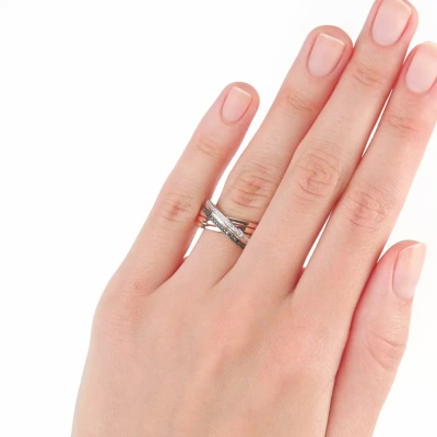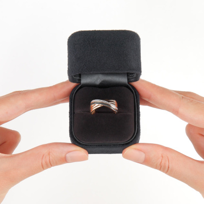 Кольцо с 31 бриллиантом черным облагороженным, 0.07 карат, огранка круг 57 граней, цвет 7, чистота 6, тип огранки А; 31 бриллиантом, 0.07 карат, огранка круг 17 граней, цвет 2, чистота 2, тип огранки Б; Розовое золото 585 пробы.