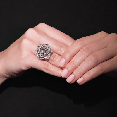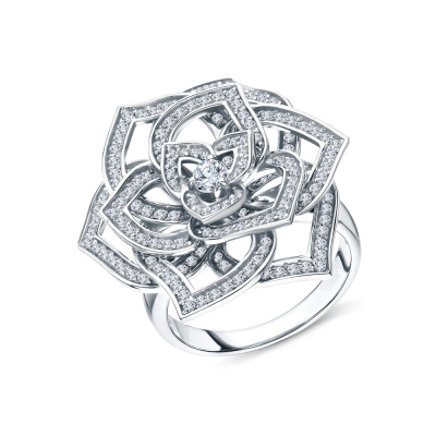 Кольцо с 1 бриллиантом природным, 0.11 карат, огранка круг 57 граней, цвет 3, чистота 6, тип огранки А; 172 бриллиантами природными, 0.59 карат, огранка круг 17 граней, цвет 2, чистота 2, тип огранки А; 21 бриллиантом природным, 0.03 карат, огранка круг 17 граней, цвет 2, чистота 2, тип огранки А; Белое золото 585 пробы.