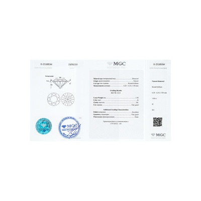 Кольцо с 1 бриллиантом природным, 1 карат, огранка круг 57 граней, цвет 5, чистота 6, тип огранки А; Платина 950 пробы.