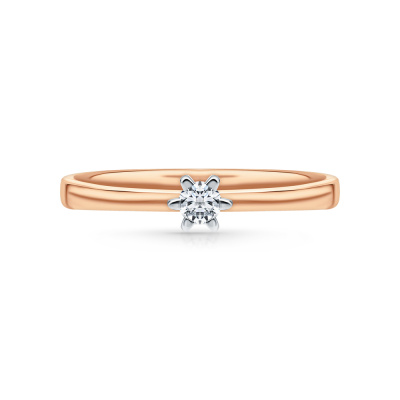 Кольцо «БРИЛЛИАНТЫ ЯКУТИИ» с 1 бриллиантом, 0.091 карат, огранка круг 57 граней, цвет 3, чистота 6, тип огранки А; Розовое золото 585 пробы.