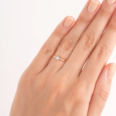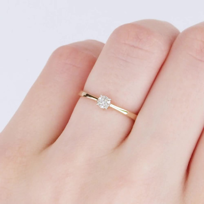 Кольцо с 1 бриллиантом природным, 0.008 карат, огранка круг 17 граней, цвет 2, чистота 2, тип огранки А; 6 бриллиантами природными, 0.02 карат, огранка круг 17 граней, цвет 2, чистота 2, тип огранки А; Розовое золото 585 пробы.