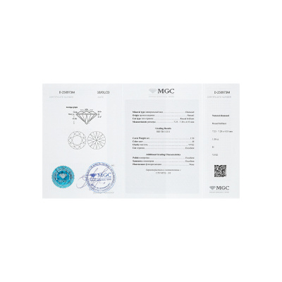 Кольцо с 1 бриллиантом природным, 1.5 карат, огранка круг 57 граней, цвет 5, чистота 3, тип огранки А; 12 бриллиантами природными, 0.36 карат, огранка круг 57 граней, цвет 3, чистота 6, тип огранки А; Белое золото 750 пробы.
