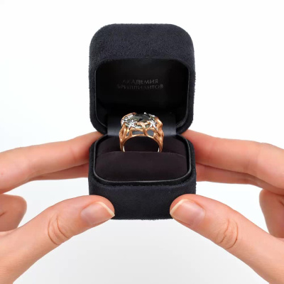 Золотое кольцо с празиолитом и бриллиантами