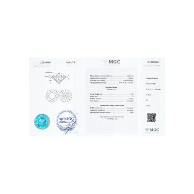 Кольцо с 1 бриллиантом природным, 1 карат, огранка круг 57 граней, цвет 1, чистота 3, тип огранки А; Платина 950 пробы.