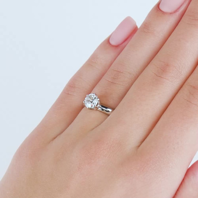 Кольцо с 1 бриллиантом природным, 0.9 карат, огранка круг 57 граней, цвет 4, чистота 5, тип огранки А; Белое золото 750 пробы.