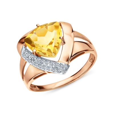 Золотое кольцо с бриллиантами природными и цитринами природными