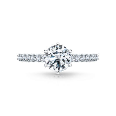 Кольцо с 1 бриллиантом природным, 1.2 карат, огранка круг 57 граней, цвет 6, чистота 3, тип огранки А; 14 бриллиантами природными, 0.16 карат, огранка круг 57 граней, цвет 3, чистота 6, тип огранки А; Платина 950 пробы.