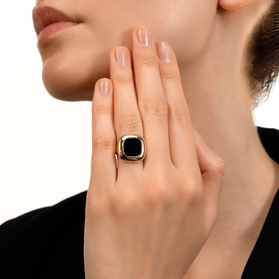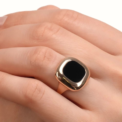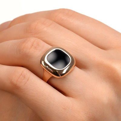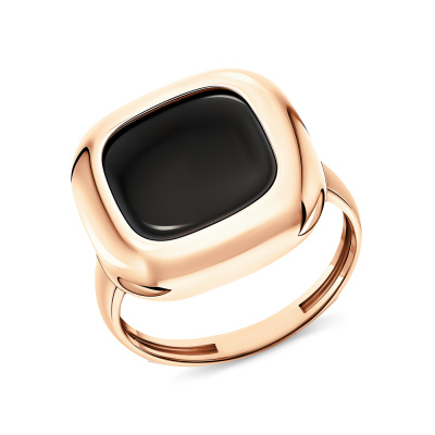 Кольцо с 1 ониксом черным природным, 2.48 карат; Розовое золото 585 пробы.