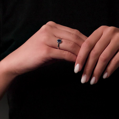 Кольцо с 1 сапфиром, 0.57 карат, цвет 2, чистота 2, тип огранки Б; Белое золото 585 пробы.
