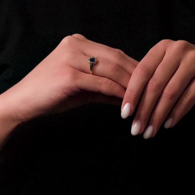 Кольцо с 1 сапфиром синтетическим, 0.78 карат, тип огранки Б; Желтое золото 585 пробы.