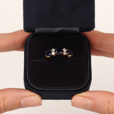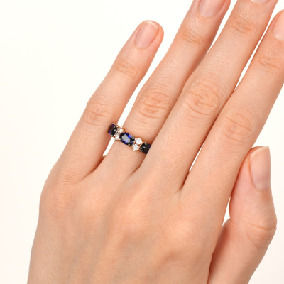 Золотое кольцо с бриллиантами природными и сапфирами выращенными