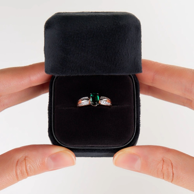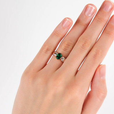Золотое кольцо с бриллиантами природными и изумрудами выращенными