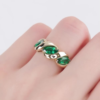 Золотое кольцо с изумрудами выращенными