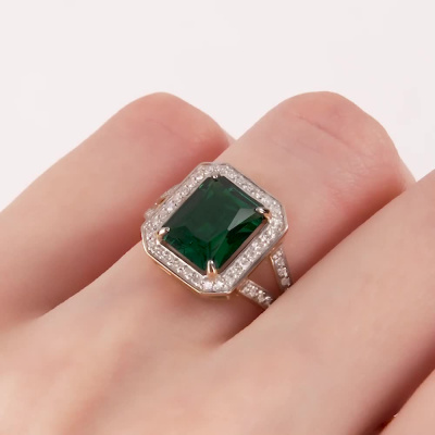 Золотое кольцо с бриллиантами природными и изумрудами выращенными