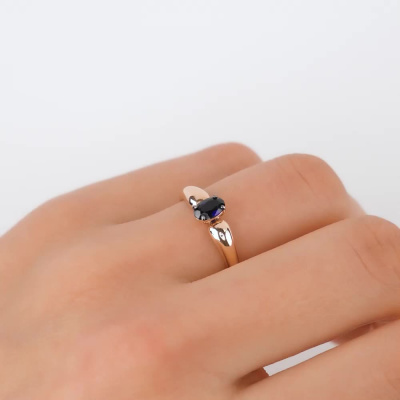 Кольцо с 1 сапфиром синтетическим, 0.51 карат, тип огранки Б; Розовое золото 585 пробы.
