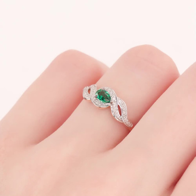 Кольцо с 1 гидротермальным изумрудом, 0.17 карат, тип огранки Б; 35 бриллиантами, 0.09 карат, огранка круг 17 граней, цвет 2, чистота 2, тип огранки А; Розовое золото 585 пробы.