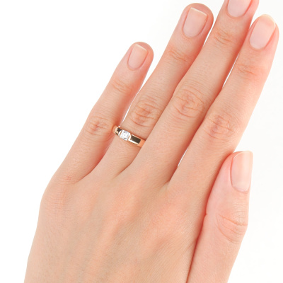 Кольцо с 1 бриллиантом природным, 0.18 карат, огранка круг 57 граней, цвет 3, чистота 6, тип огранки А; Розовое золото 585 пробы.