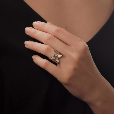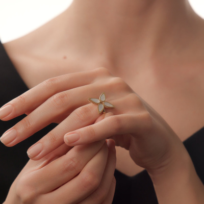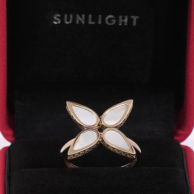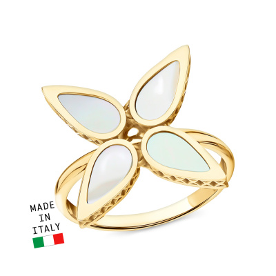 Кольцо с 4 перламутрами белыми природными; Желтое золото 585 пробы.