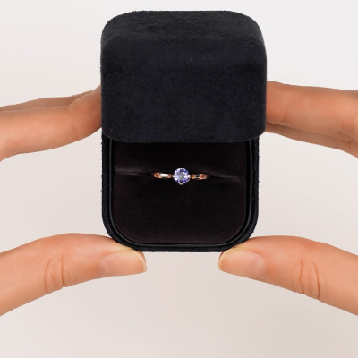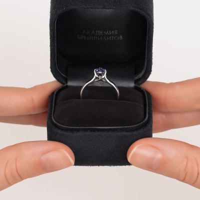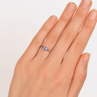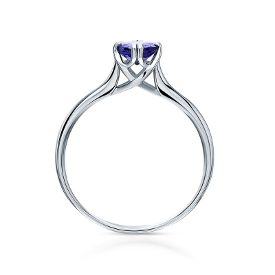 Кольцо с 1 танзанитом природным, 0.5 карат; Белое золото 585 пробы.