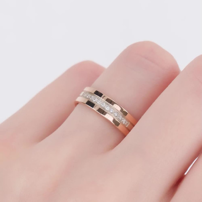 Кольцо с 11 бриллиантами природными, 0.08 карат, огранка круг 57 граней, цвет 3, чистота 5, тип огранки А; Розовое и белое золото 585 пробы.