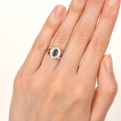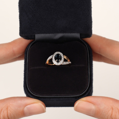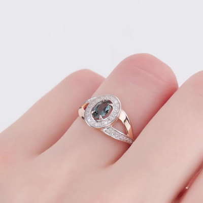 Кольцо с 28 бриллиантами природными, 0.13 карат, огранка круг 17 граней, цвет 2, чистота 2, тип огранки А; 8 бриллиантами природными, 0.01 карат, огранка круг 17 граней, цвет 2, чистота 2, тип огранки А; 1 топазом лондон природным, 0.5 карат; Розовое золото 585 пробы.
