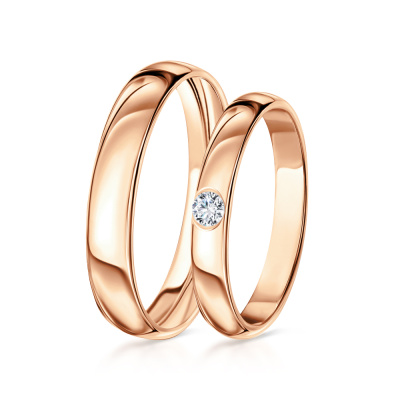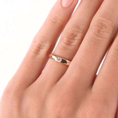 Кольцо с 1 бриллиантом природным, 0.06 карат, огранка круг 57 граней, цвет 3, чистота 5, тип огранки А; Розовое золото 585 пробы.