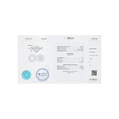 Кольцо с 1 бриллиантом природным, 0.5 карат, огранка круг 57 граней, цвет 4, чистота 4, тип огранки А; Платина 950 пробы.